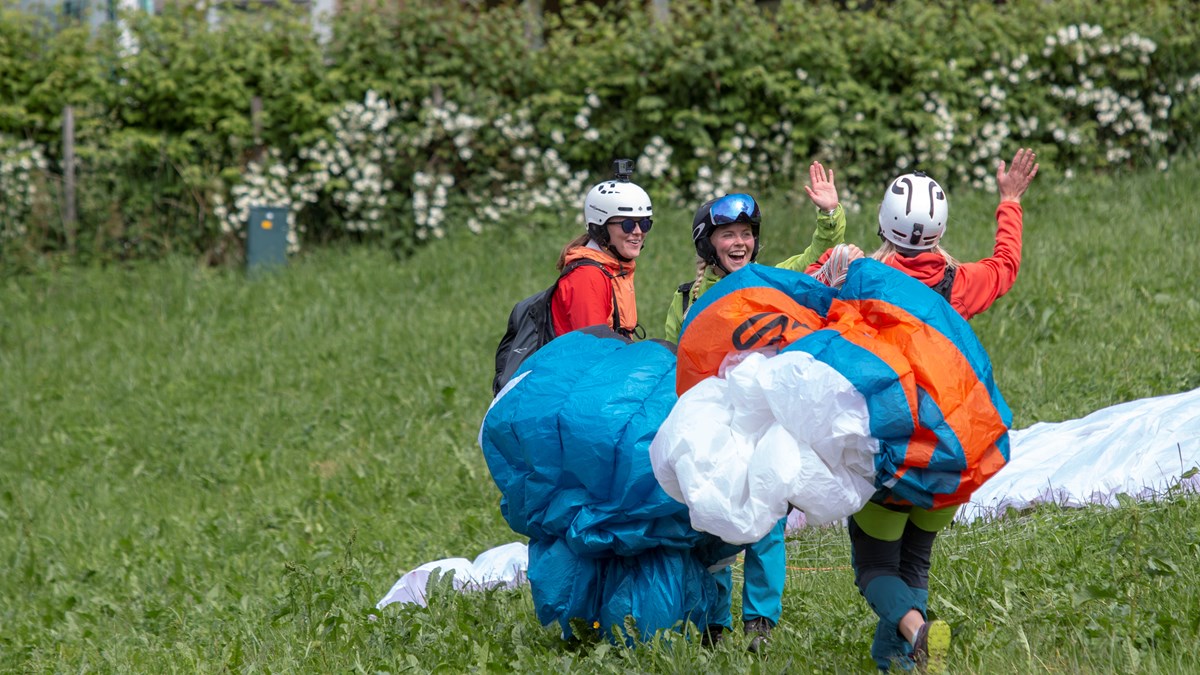 Main Meeting Point: The paragliding landing zone next to the gondola.